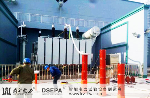 在現場了解基本情況之后,第一臺試驗是變壓器的工頻耐壓,采用串聯諧振試裝置操作,該裝置是整合試驗項目中電壓最高,容量最大,安全問題相對會多,試驗之前我要仔細的說明這個試驗的安全的重要性,做好隔離措施和人工值守確保試驗順利的進行,串聯諧振試驗之前,要分析和計算被試對象的技術參數,選擇合適的電感進行匹配,來獲取最好的頻率點,客戶要求目標電壓是162kv,所以我采用18*10進行串聯,電源通過控制部分由勵磁變提高輸出功率,進入電抗器進行電壓疊加,由尾端接入變壓器,將變壓器主體和其它不進行測試的導線引入大地,操作模式選擇自動試驗,選擇目標電壓,選擇計時時間,裝置自動尋找頻率點,然后加電壓,符合要求自動降下電壓,如果有故障,會有故障報警信號和保護原因。