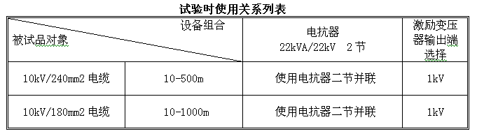 1.10kV/240mm2電纜500m,電容量≤0.17μF,試驗(yàn)頻率為30-300Hz,試驗(yàn)電壓22kV。
