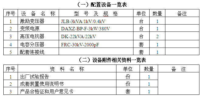 1. 激勵(lì)變壓器JLB-3kVA/1 kV/0.4kV 1臺(tái)