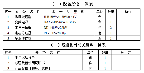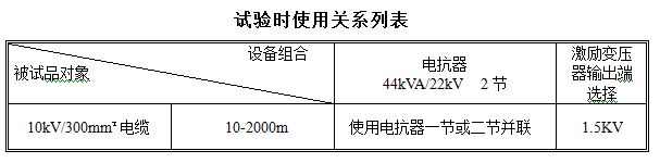 1.10kV/400mm2電纜2km,電容量≤0.84μF,試驗頻率為30-300Hz,試驗電壓22kV。