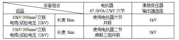 2. 35kV,300平方毫米交聯電纜3km,試驗頻率30~300HZ,電容量≤0.57μF,試驗電壓52kV。