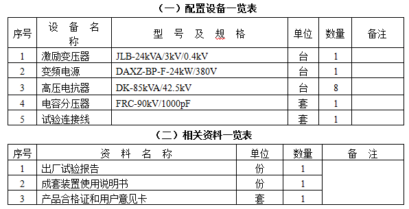 1. 27.5kV/400mm2電纜2km,電容量≤0.43μF,試驗頻率為30-300Hz,試驗電壓85kV。