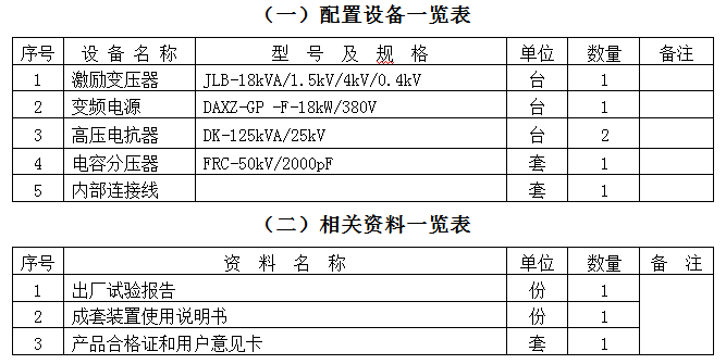 1. 激勵(lì)變壓器JLB-18kVA/1.5kV/4kV/0.4kV 1臺(tái)