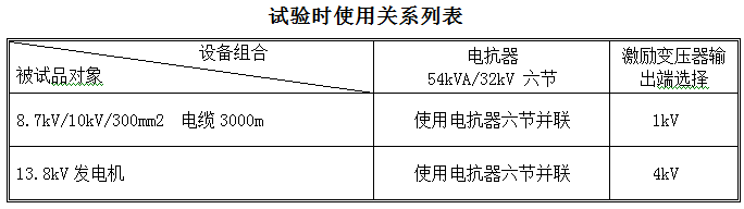 結論:串聯諧振裝置容量定為324kVA/32kV;分六節電抗器,電抗器單節為54kVA/32kV/1.69A/60H通過組合使用能滿足上述被試品的試驗要求。
