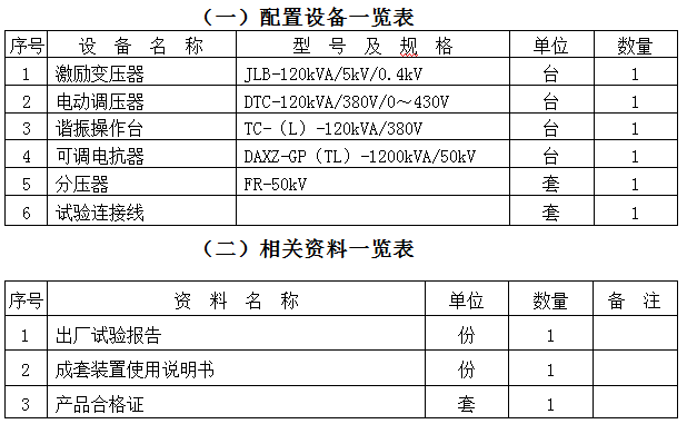 1. 激勵(lì)變壓器JLB-120kVA/5kV/0.4kV 1臺(tái)