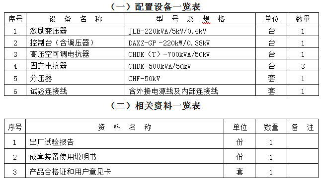 1.激勵(lì)變壓器JLB-220kVA/5kV/0.4kV 1臺(tái)