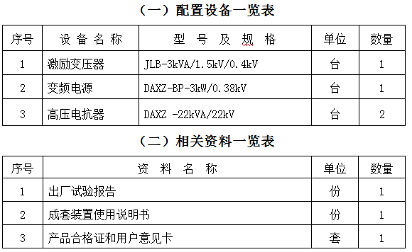 1. 激勵(lì)變壓器 JLB-3kVA/1.5kV/0.4kV 1臺(tái)