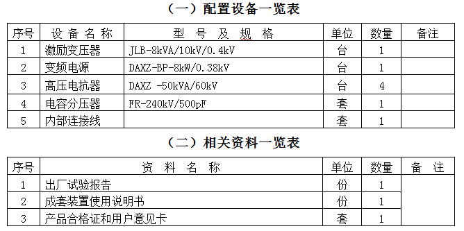 1. 激勵(lì)變壓器JLB-8kVA/8kV/0.4kV 1臺(tái)