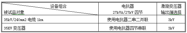 串聯(lián)諧振裝置容量定為108kVA/108KV,分四節(jié)電抗器,電抗器單節(jié)為27kVA/27kV/1A通過組合使用能滿足上述被試品的試驗(yàn)要求。