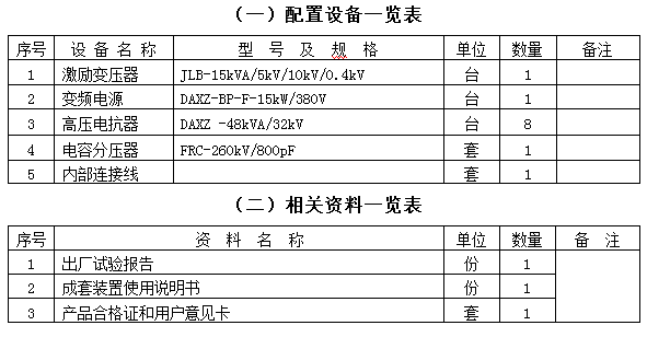 1. 激勵(lì)變壓器JLB-15kVA/5/10kV/0.4kV 1臺(tái)