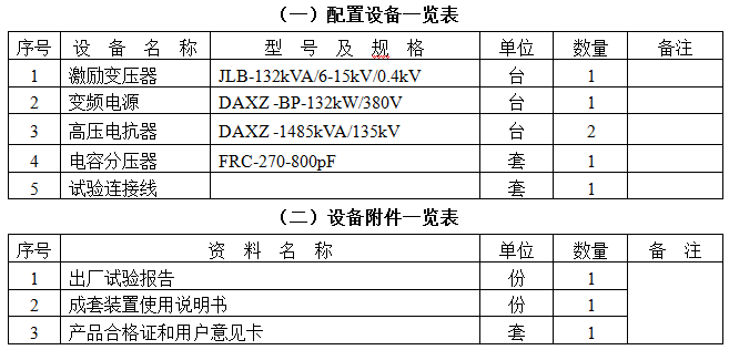 1. 激勵(lì)變壓器JLB-132kVA/6-15kV/0.4kV 1臺(tái)