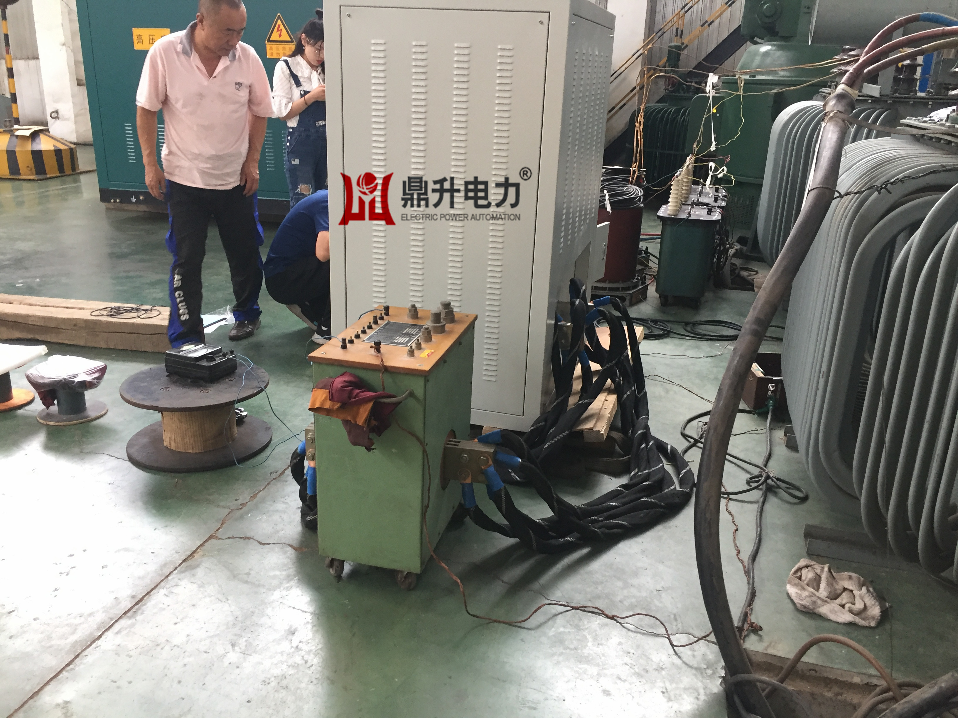 我司人員到達現場之后,立即配合電科院人員擺放大電流發生器,并布置儀器專用電源。