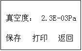 選擇執(zhí)行“保存”命令可保存當(dāng)前液晶顯示的數(shù)據(jù),選擇執(zhí)行“打印” 命令即可打印出當(dāng)前液晶顯示數(shù)據(jù),如果想再次進(jìn)行測(cè)量,按“復(fù)位”鍵或者是按“↑”或“設(shè)置”鍵讓光標(biāo)置于“返回”后,再按“確認(rèn)”鍵真空開關(guān)真空度測(cè)試儀即可返回到界面。