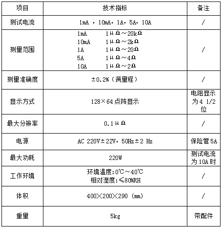 DCZZ-10A直流電阻快速測(cè)試儀主要技術(shù)參數(shù):