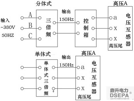 SFQ三倍頻電源發(fā)生器試驗接線示意圖,鼎升電力技術(shù)《SFQ三倍頻電源發(fā)生器試驗接線示意圖》、三倍頻電源發(fā)生器使用方法及三倍頻發(fā)生器,SFQ三倍頻電源發(fā)生器試驗接線示意圖來自于鼎升電力檢測試驗技術(shù),鼎升電力致立研發(fā)標(biāo)準(zhǔn)、穩(wěn)定、安全的電力試驗設(shè)備。