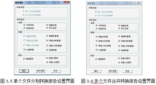 2.再點擊生成報告,彈出報告設(shè)置對話框,如圖3.6。 3.選擇需要保存的選項,點擊確定,彈出保存文件位置對話框,默認(rèn)位置在試驗報告文件夾中。