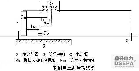 接觸電壓的測量接線圖如下圖所示??砂聪率霾襟E進(jìn)行測試。