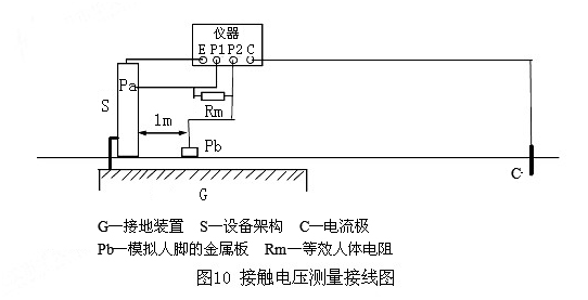 上述測量中,若儀器電壓輸入端不并聯等效人體電阻Rm,則所得結果為接觸電位差。