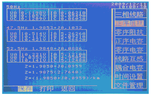 此時通電開機,提示輸入線路長度,我們默認為長度為1Km。然后自動進入干擾測試界面。干擾信號測試完成后,顯示干擾信號的值,并判斷干擾信號是否超標,如果超標,儀器將退出測試流程。程序設定為接入測試電源后(抑制后)的干擾電壓<250V,干擾電流<40A。進入47.5Hz和52.5HZ的測試流程。兩個頻率的測試完成后,進入降壓保護過程,顯示出最終的測試結果。