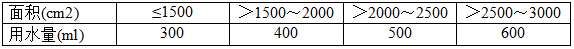 b)按每平方厘米表面積用水0.2ml計算總用水量。
