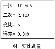 高壓CT變比測試儀如何測量變比: 在主畫面下,按[2]鍵進入此畫面。在此功能,可以顯示出一次、二次電流值及變比值,并可顯示變比誤差。