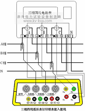 三相四線制低壓電能表經(jīng)鉗形互感器接線示意圖,鼎升電力技術(shù)《三相四線制低壓電能表經(jīng)鉗形互感器接線示意圖》、使用方法及,三相四線制低壓電能表經(jīng)鉗形互感器接線示意圖來自于鼎升電力檢測試驗技術(shù),鼎升電力致立研發(fā)標(biāo)準(zhǔn)、穩(wěn)定、安全的電力試驗設(shè)備。