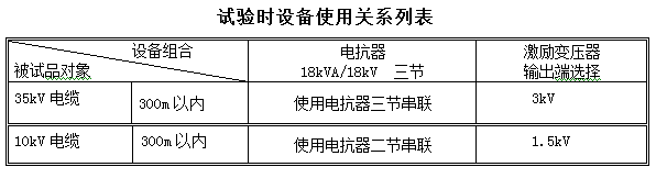 35kV,截面積300mm²,長度500m以內電纜的交流耐壓試驗,試驗頻率為30-300Hz,電容量≤0.05uF,試驗電壓52kV。