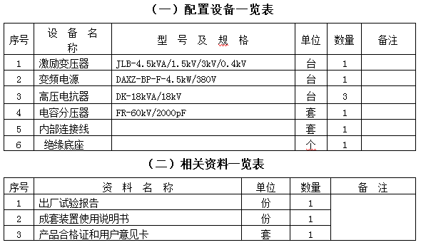 1. 激勵變壓器JLB-4.5kVA/1.5kV/3kV/0.4kV 1臺