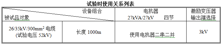 串聯諧振裝置容量定為108kVA/54kV;分4節電抗器,電抗器單節為27kVA/27kV/1A通過組合使用能滿足上述被試品的試驗要求。