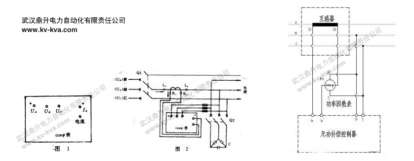 由于電流互感器安裝在中相(綠相),則電壓接線柱左邊那個(gè)應(yīng)接綠色相電壓。然后以綠色相為UA,用相序表測(cè)定黃、綠、紅三相電壓的相序,結(jié)果是綠一黃一紅為正相序。圖2中括號(hào)所標(biāo)的UA、UB、UC即為相序表測(cè)定的結(jié)果.則在中間的電壓接線柱應(yīng)接黃相電壓.右邊的電壓接線應(yīng)接紅色相電壓。電壓線接好后,再看電流線怎樣連接。由于電流互感器的極性標(biāo)注法是減極性的,即一次電流從L1端流人互感器,則互感器的二次電流從K1端流出,所以就應(yīng)把電流互感器的K1端與功率因數(shù)表的標(biāo)有*號(hào)的電流接線往相連,K2端與另一電流接線柱相連。這樣就相當(dāng)于負(fù)荷電流流入了標(biāo)有*號(hào)的電流接線柱(如圖2中箭頭方向所示)。雖然功率因數(shù)表裝在電容柜上,但它反映的是低壓總母線上的功率因數(shù),故電流互感器應(yīng)安裝在總母線上。